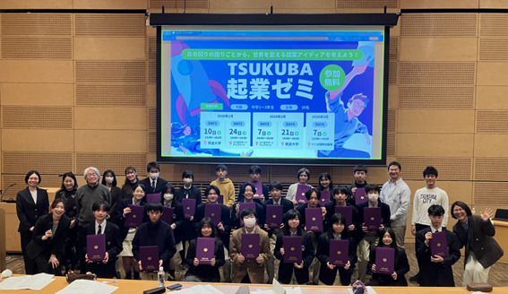 筑波大学は、中学生を対象とした起業体験プログラム「TSUKUBA起業ゼミ」を、つくば市教育委員会との共催で実施しました。本プログラムは、2026年1月から3月にかけて全5回で構成され、3月7日(土)には、プログラムの集大成となる最終発表会を、つくば国際会議場中ホールにて実施しました。